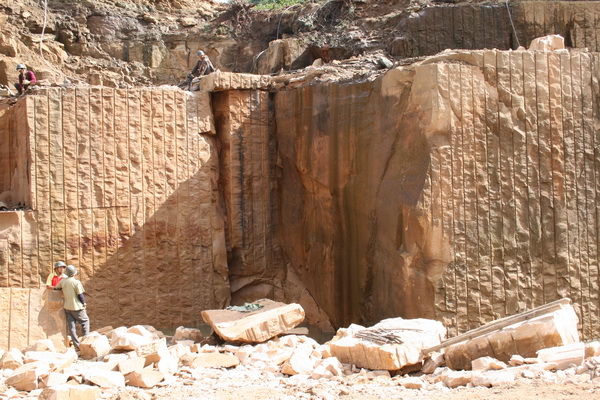 Tobacco-Sandstein wird in den östlichen Ausläufern des Himalayagebirges auf ca. 2900 m Höhe gebrochen. Der Steinbruch liegt in einem malerischen Hochtal, in dem trotz der Höhe ein sehr mildes Klima herrscht und welches sogar landwirtschaftlich genutzt wird. Auch wenn der Stein ganzjährig abgebaut wird, ruht der Blocktransport während der Regenzeit. Bevor das Material in Xiamen verschifft werden kann hat es bereits 2600km Landweg hinter sich.